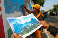 Selasa, 06 Agustus 2024 - Mural ini dibuat untuk menyambut HUT RI ke-79 dengan tema \"Nusantara Baru Indonesia Maju\".