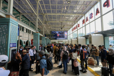 Rabu, 24 Desember 2025 - Menjelang perayaan Natal dan Tahun Baru (Nataru) 2026, aktivitas keberangkatan penumpang di Stasiun Pasar
