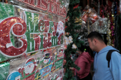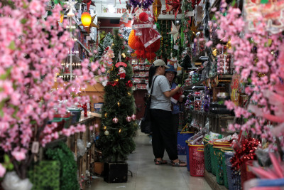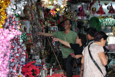 Selasa, 23 Desember 2025 - Menjelang perayaan Natal, kawasan Pasar Asemka du Kelurahan Pinangsia, Tamansari, Jakarta Barat, menjadi