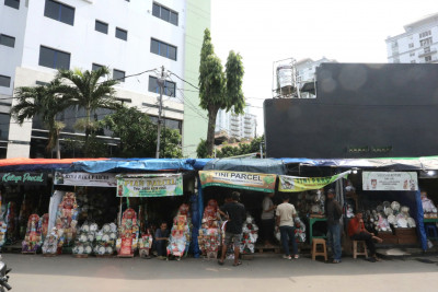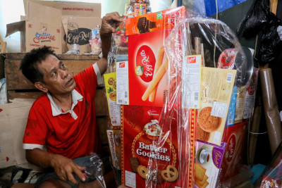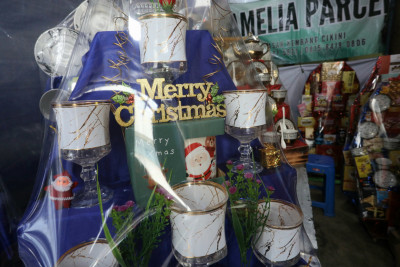 Selasa, 23 Desember 2025 - Sejumlah pedagang parsel menjajakan dagangannya di Pasar Kembang Cikini, Jalan Pegangsaan Timur, Cikini