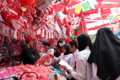 Rabu, 13 Agustus 2025 - Jelang Hari Ulang Tahun (HUT) ke-80 Republik Indonesia pedagang pernak-pernik kemerdekaan marak di