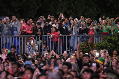 Kamis, 01 Januari 2026 - celebration in the SCBD Lot 1 area, South Jakarta, was lively despite light drizzle on Wednesday night (12