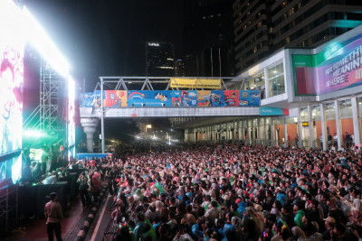 Rabu, 31 Desember 2025 - kawasan SCBD Lot 1, Jakarta Selatan, berlangsung meriah meski diguyur gerimis pada Rabu malam, (31/12