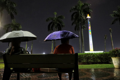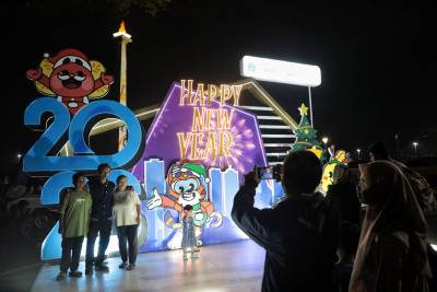 Rabu, 31 Desember 2025 - menikmati malam jelang pergantian tahun di kawasan Monumen Nasional (Monas), Jakarta Pusat, Rabu (31/12