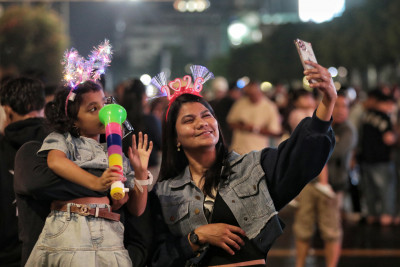 Kamis, 01 Januari 2026 - pergantian tahun dengan menyaksikan pertunjukan musik di Panggung Sarinah, Jakarta Pusat, Rabu (31/12