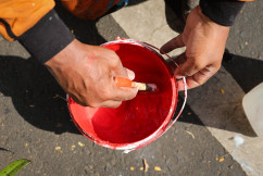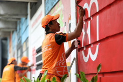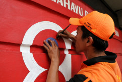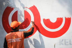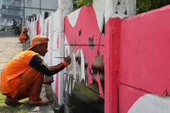 Rabu, 30 Juli 2025 - Prasarana dan Sarana Umum (PPSU) Kelurahan Balimester, Jatinegara, membuat mural Hari Ulang Tahun (HUT