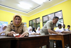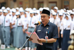 Senin, 14 Juli 2025 - Wali Kota Jakarta Timur, Munjirin menjadi pembina upacara pada hari pertama sekolah (HPS) di SMAN 39
