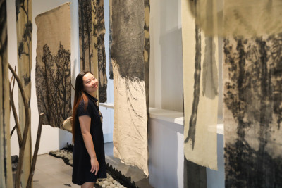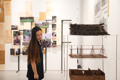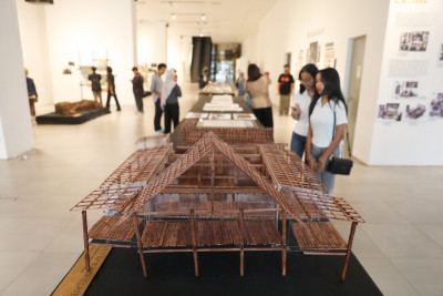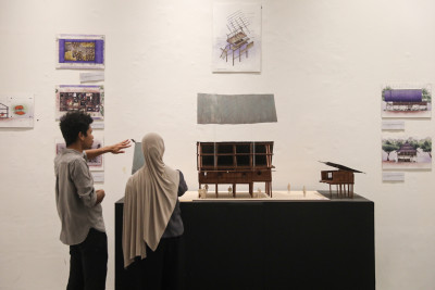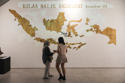 Selasa, 27 Januari 2026 - Sejumlah pengunjung mengamati karya instalasi dalam Pameran Ekskursi Arsitektur UI 2025: Tana Toa di