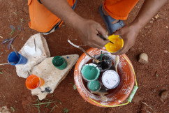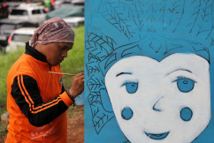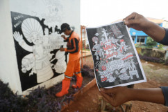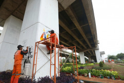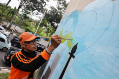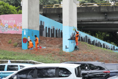 Rabu, 18 Juni 2025 - Sejumlah petugas Penanganan Prasarana dan Sarana Umum (PPSU) Kelurahan Cawang membuat mural dengan tema HUT