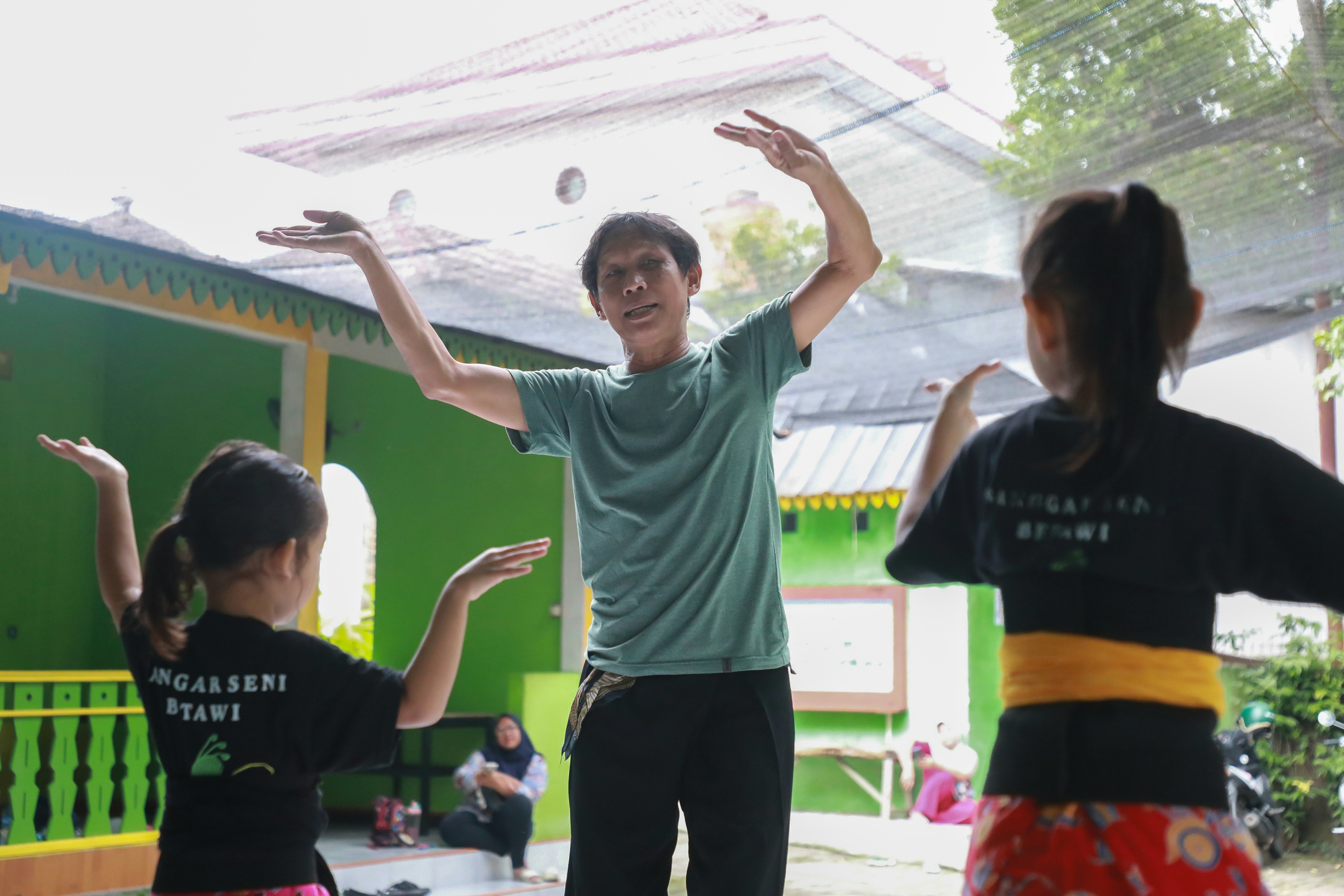 Sementara seorang pria paruh baya berdiri tegak tampak sibuk memperhatikan setiap gerakan para penari muda tersebut. Andi Supardi (65) yang dikenal sebagai seniman dan pegiat kebudayaan, tengah mengawasi dan memperbaiki setiap gerakan anak didiknya. Ia memastikan setiap langkah gerakan selaras dengan jiwa tarian Betawi yang ia lestarikan.
